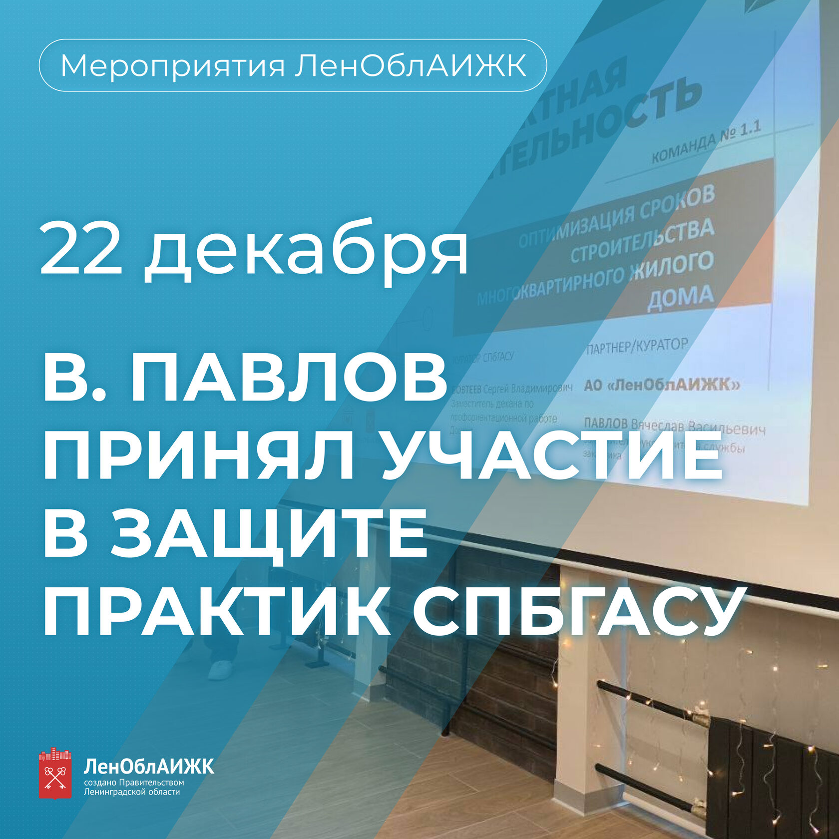 22 декабря состоялась итоговая защита работ по проектной деятельности. АО «ЛенОблАИЖК» предоставило реальный кейс с заданием продумать мероприятия для оптимизации сроков строительства